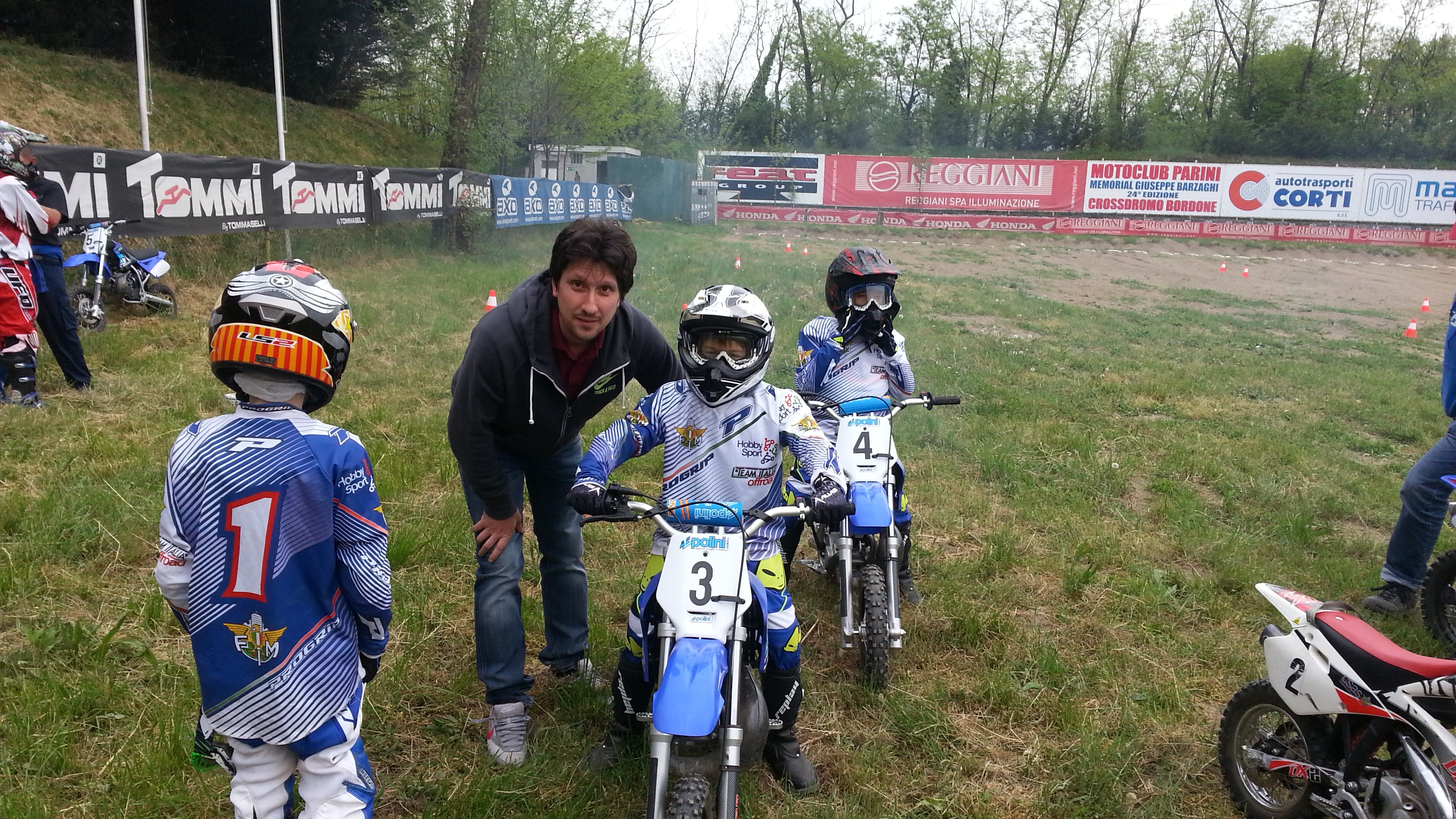Sabato 25 Aprile si è svolto sul crossdromo Bordone di Bosisio Parini il secondo appuntamento Primi Passi Mx. Dieci i bambini, dai 7 ai 14 anni, selezionati dal progetto junior CSAS 2014 indetto dalla FMI con la collaborazione della casa costruttrice di mini moto Polini che ha messo a disposizione dei futuri crossisti moto e abbigliamento protettivo. Il corso, diretto da Andrea Marnoni, Gianangelo Croci, Alberto Valsecchi e Ettore Turati, si è svolto con una prima parte teorica e una seconda parte pratica.Nella prima parte teorica i bambini hanno potuto ripassare i concetti di base, di come funziona una moto e cosa fare per tenerla sempre efficiente. Nella seconda parte, gli aspiranti crossisti, hanno potuto provare l’ ebrezza di schierarsi dietro un vero cancelletto di partenza e di cimentarsi su un percorso di minicross adiacente alla pista. Purtroppo, causa il maltempo, il corso programmato anche per Domenica 26 Aprile non si è potuto svolgere regolarmente con grande delusione di tutti i partecipanti.