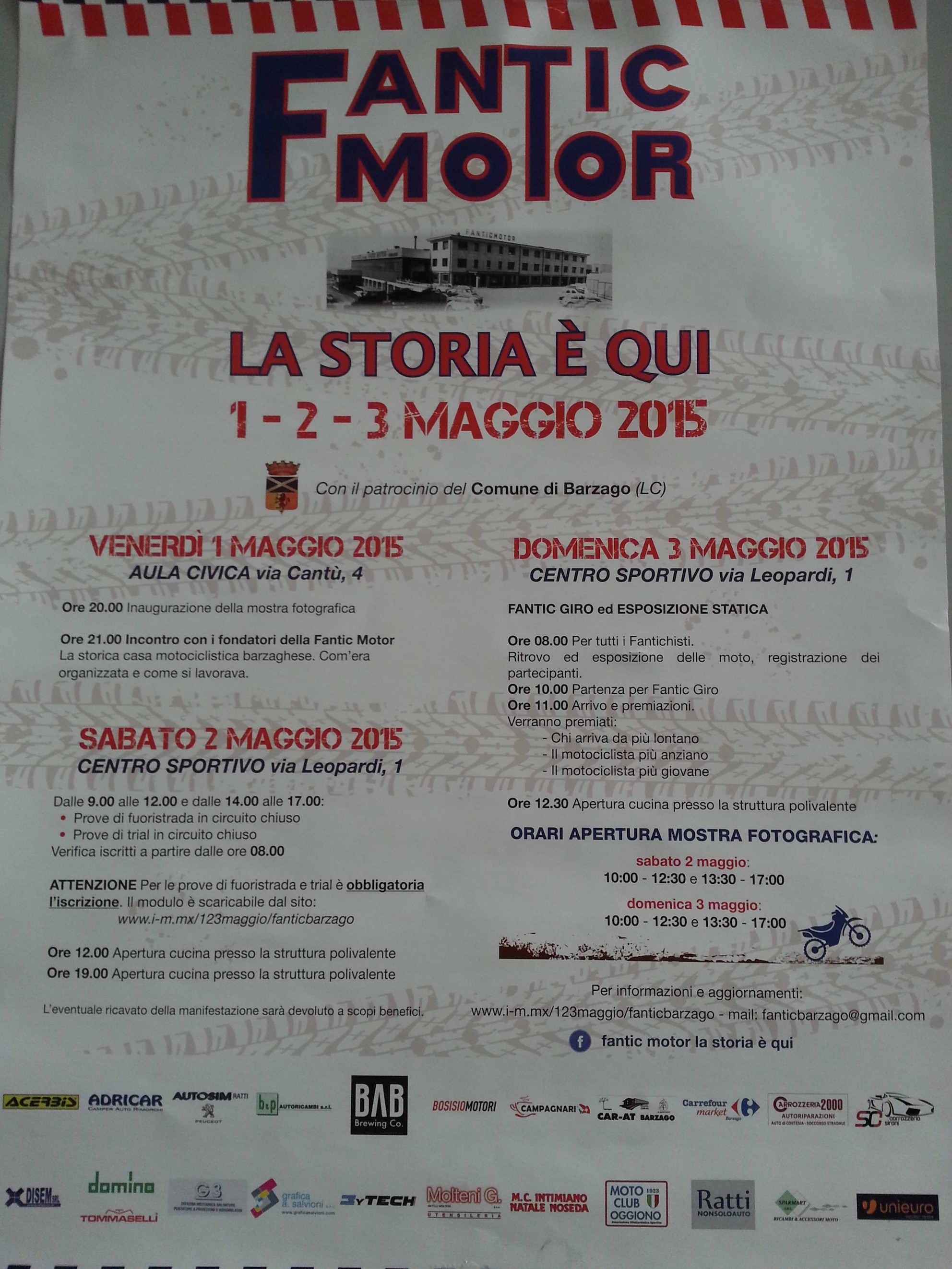 Moto Club Oggiono partner della manifestazione ” La Storia è Qui “rievocazione storica organizzata da ex dipendenti Fantic Motor con il patrocinio del comune di Barzago.. Referente per il Moto Club Oggiono Fabio Perego ( il Maestro).